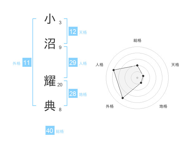 小沼 耀典さんを姓名の画数から五運を鑑定