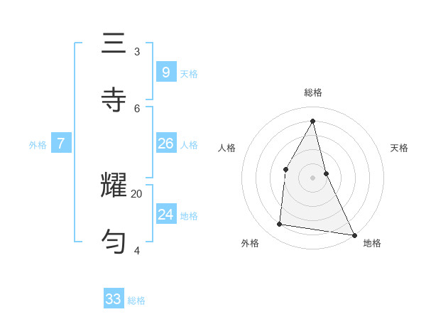 三寺 耀匀さんの総格は33画の4点!