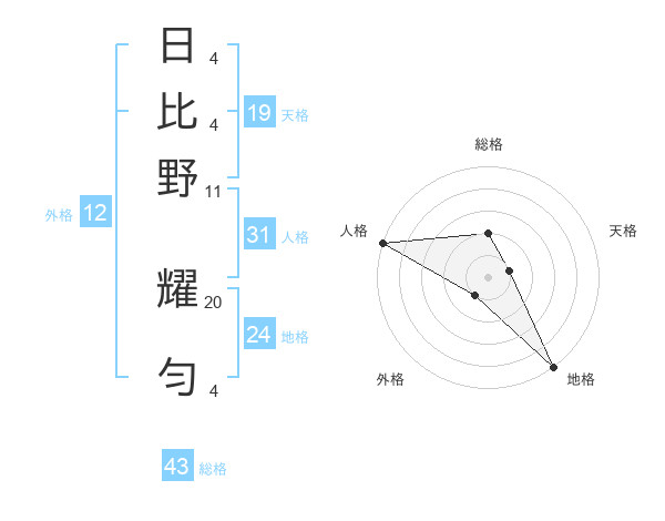 日比野 耀匀さんを姓名の画数から五運を鑑定
