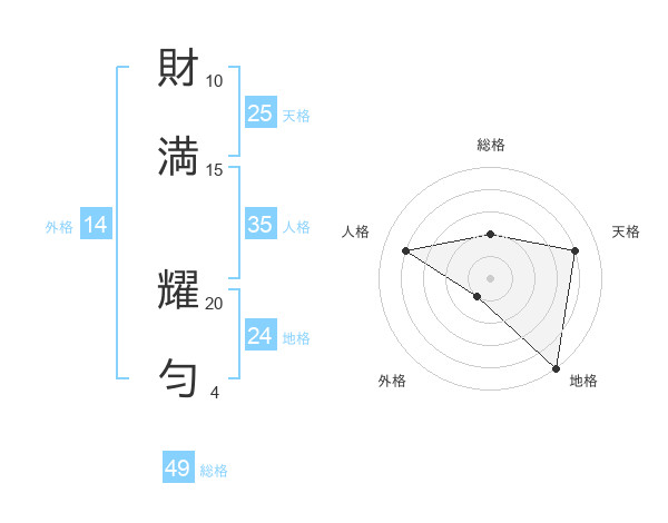 財満 耀匀さんを姓名の画数から五運を鑑定