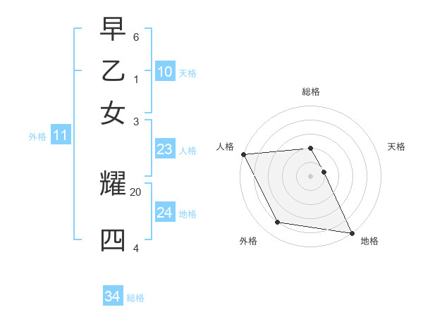 早乙女 耀四さんを姓名の画数から五運を鑑定