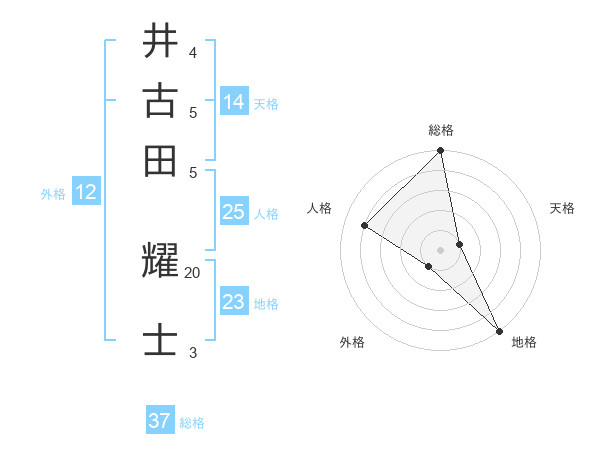 井古田 耀士さんの総格は37画の5点!