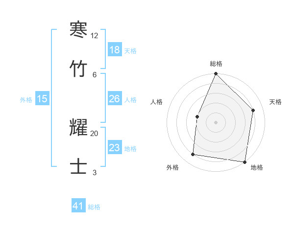 寒竹 耀士さんの地格は23画の5点!
