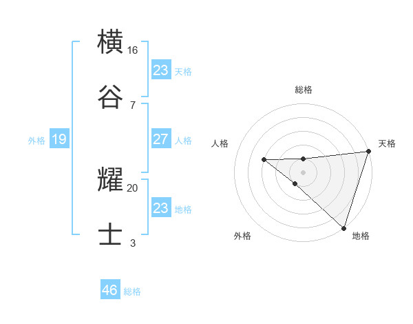 横谷 耀士さんの天格は23画の5点!