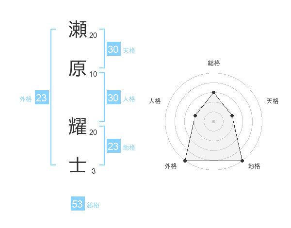 瀬原 耀士さんの外格は23画の5点!