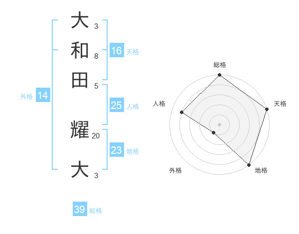 大和田 耀大さんの総格は39画の5点!