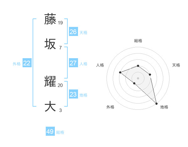 藤坂 耀大さんの総格は49画の2点!