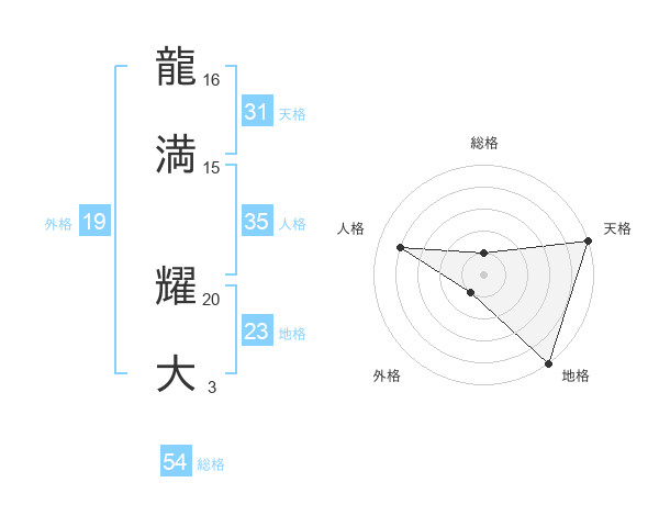 龍満 耀大さんの総格は54画の1点!