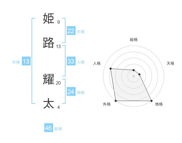 姫路 耀太さんの天格は22画の1点!