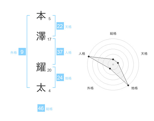 本澤 耀太さんを姓名の画数から五運を鑑定