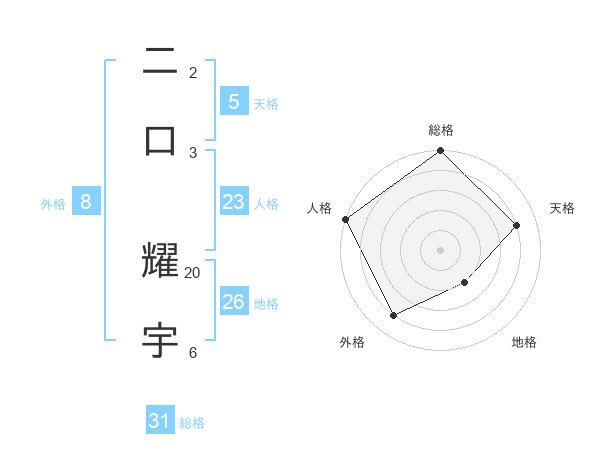 二口 耀宇さんの総格は31画の5点!