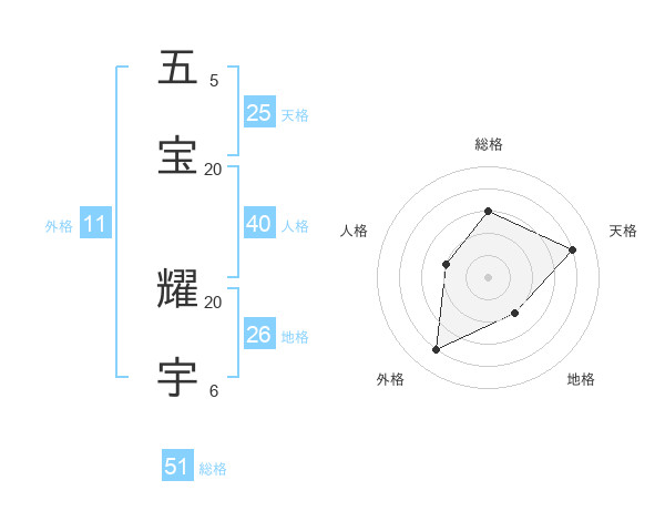 五宝 耀宇さんを姓名の画数から五運を鑑定