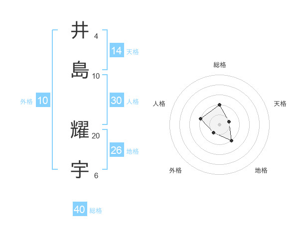 井島 耀宇さんを姓名の画数から五運を鑑定