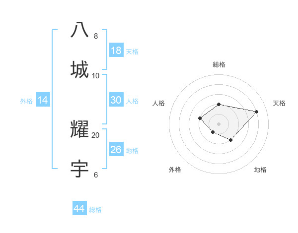 八城 耀宇さんの総格は44画の2点!