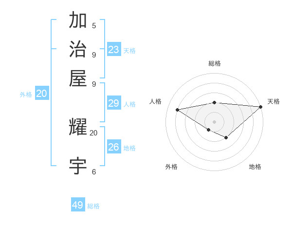 加治屋 耀宇さんの天格は23画の5点