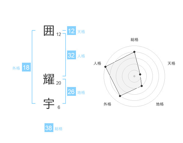 囲 耀宇さんの総格は38画の4点!