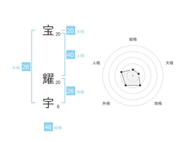 宝 耀宇さんを姓名の画数から五運を鑑定