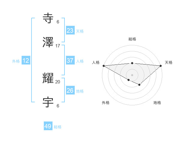 寺澤 耀宇さんの総格は49画の2点!