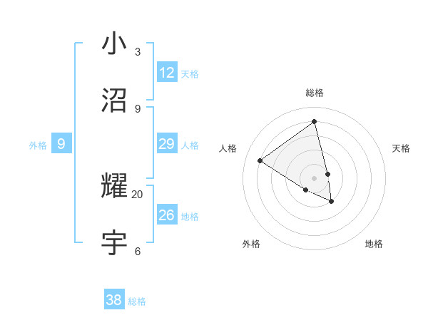 小沼 耀宇さんを姓名の画数から五運を鑑定