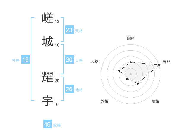 嵯城 耀宇さんの天格は23画の5点!