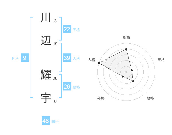 川辺 耀宇さんを姓名の画数から五運を鑑定