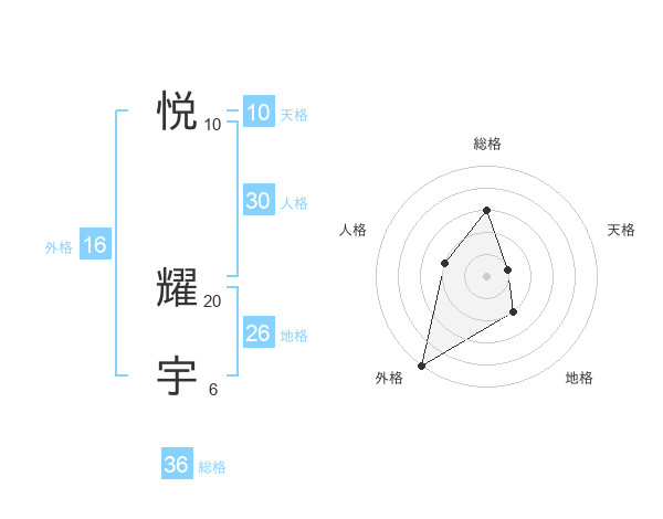 悦 耀宇さんの総格は36画の3点!