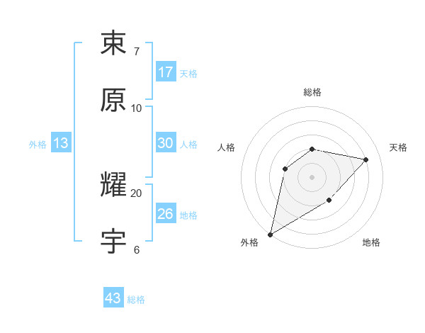 束原 耀宇さんを姓名の画数から五運を鑑定