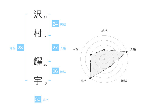 沢村 耀宇さんを姓名の画数から五運を鑑定