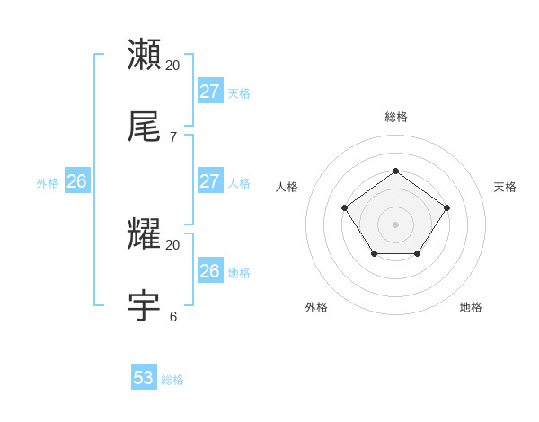瀬尾 耀宇さんの総格は53画の3点!
