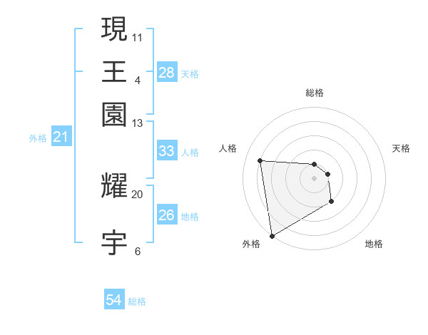現王園 耀宇さんの外格は21画の5点!
