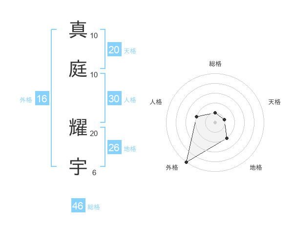 真庭 耀宇さんを姓名の画数から五運を鑑定