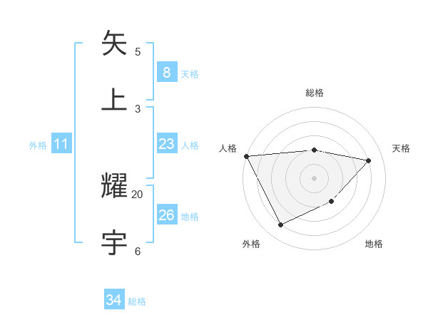 矢上 耀宇さんを姓名の画数から五運を鑑定