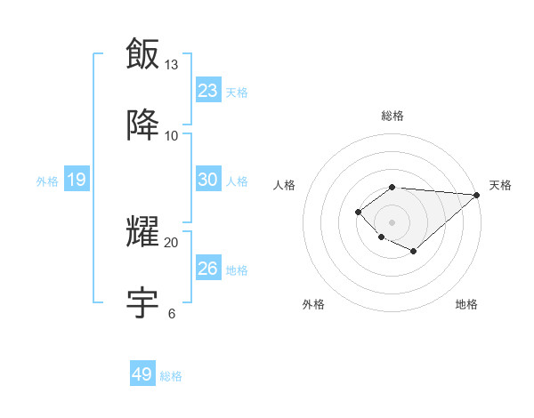 飯降 耀宇さんを姓名の画数から五運を鑑定