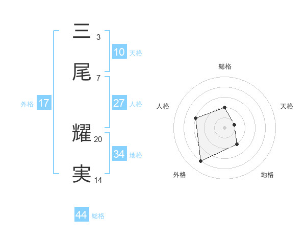 三尾 耀実さんを姓名の画数から五運を鑑定