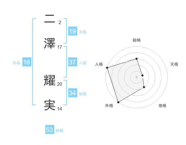 二澤 耀実さんを姓名の画数から五運を鑑定