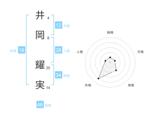 井岡 耀実さんを姓名の画数から五運を鑑定