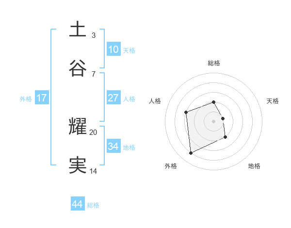土谷 耀実さんを姓名の画数から五運を鑑定