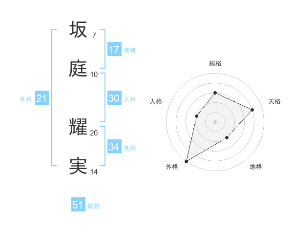 坂庭 耀実さんの総格は51画の3点!