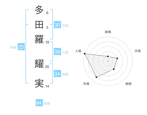 多田羅 耀実さんを姓名の画数から五運を鑑定