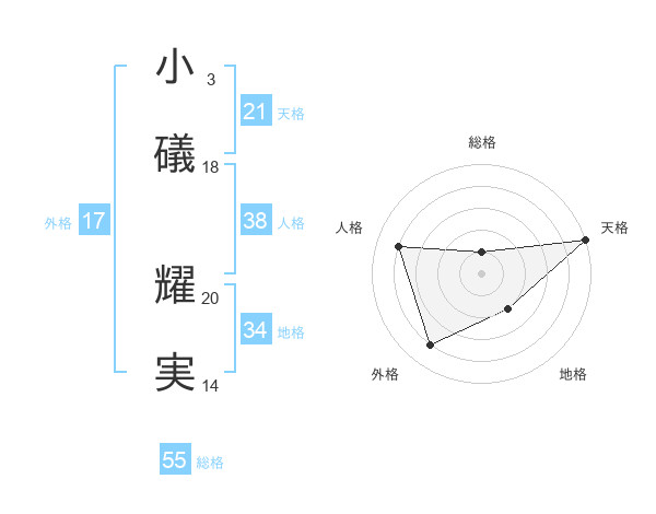 小礒 耀実さんの外格は17画の4点!