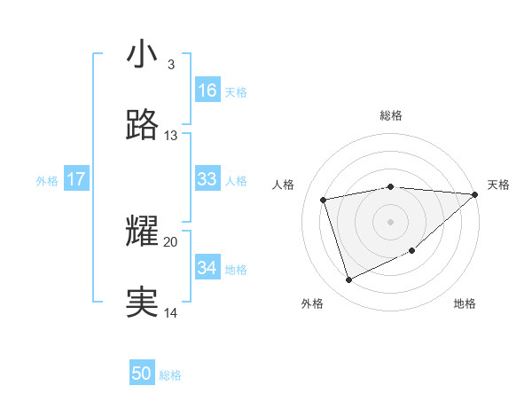 小路 耀実さんの総格は50画の2点!