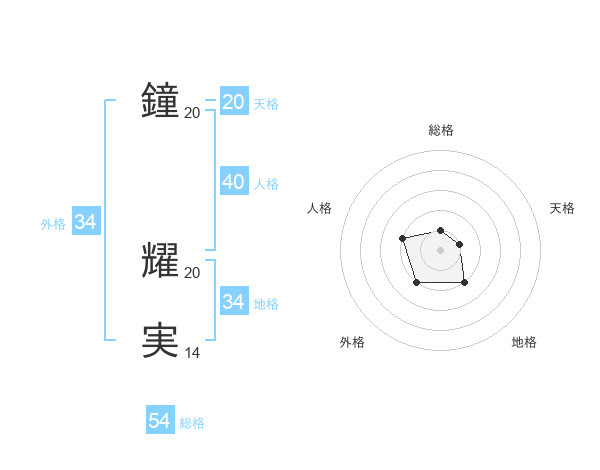 鐘 耀実さんの天格は20画の1点!