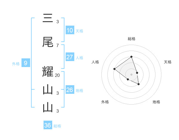 三尾 耀山山さんを姓名の画数から五運を鑑定