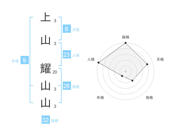上山 耀山山さんを姓名の画数から五運を鑑定