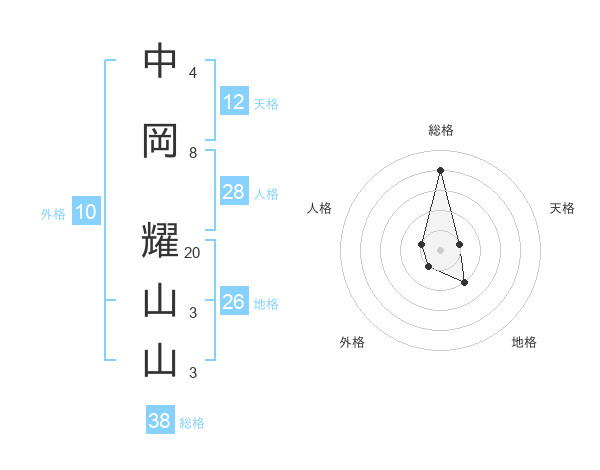 中岡 耀山山さんを姓名の画数から五運を鑑定