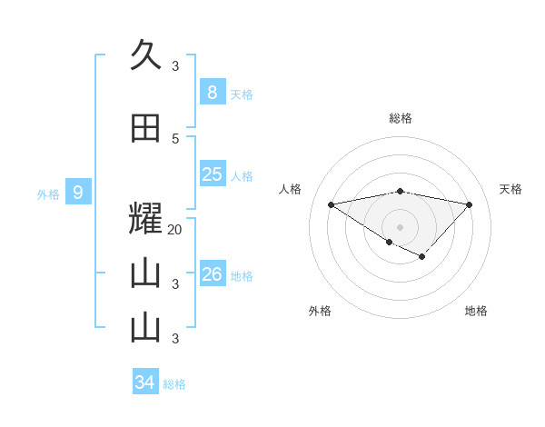 久田 耀山山さんを姓名の画数から五運を鑑定