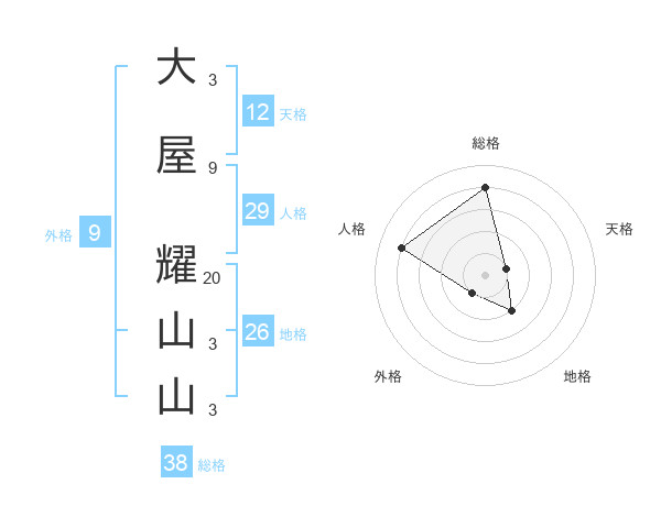 大屋 耀山山さんを姓名の画数から五運を鑑定