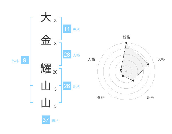 大金 耀山山さんを姓名の画数から五運を鑑定
