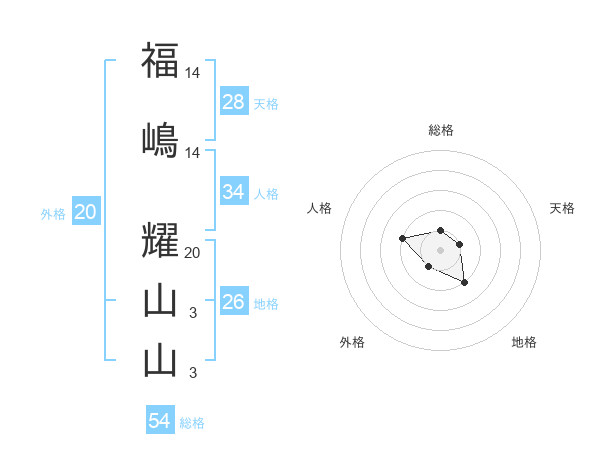 福嶋 耀山山さんを姓名の画数から五運を鑑定