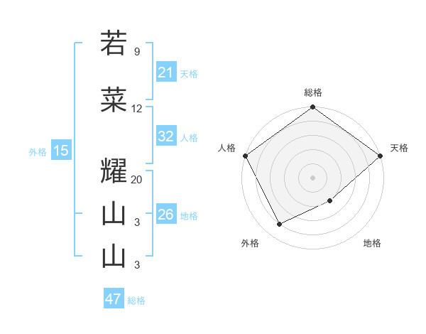 若菜 耀山山さんの総格は47画の5点